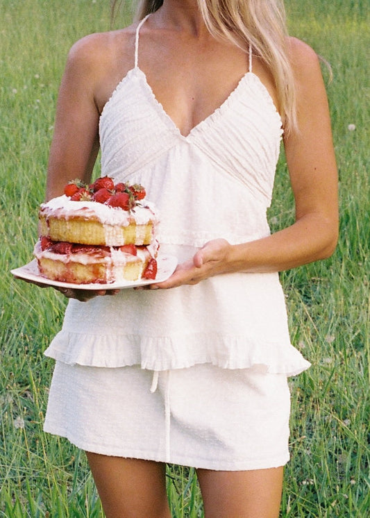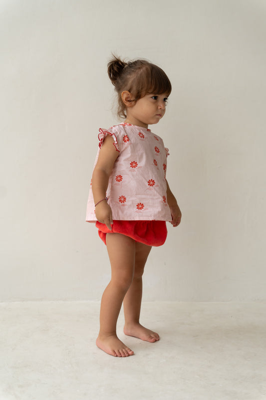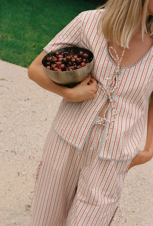 Poet Ruffle Crop - Strawberry Check
