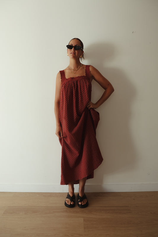 The Juno Midi - Chocolate & Baby Blue Polka Dot