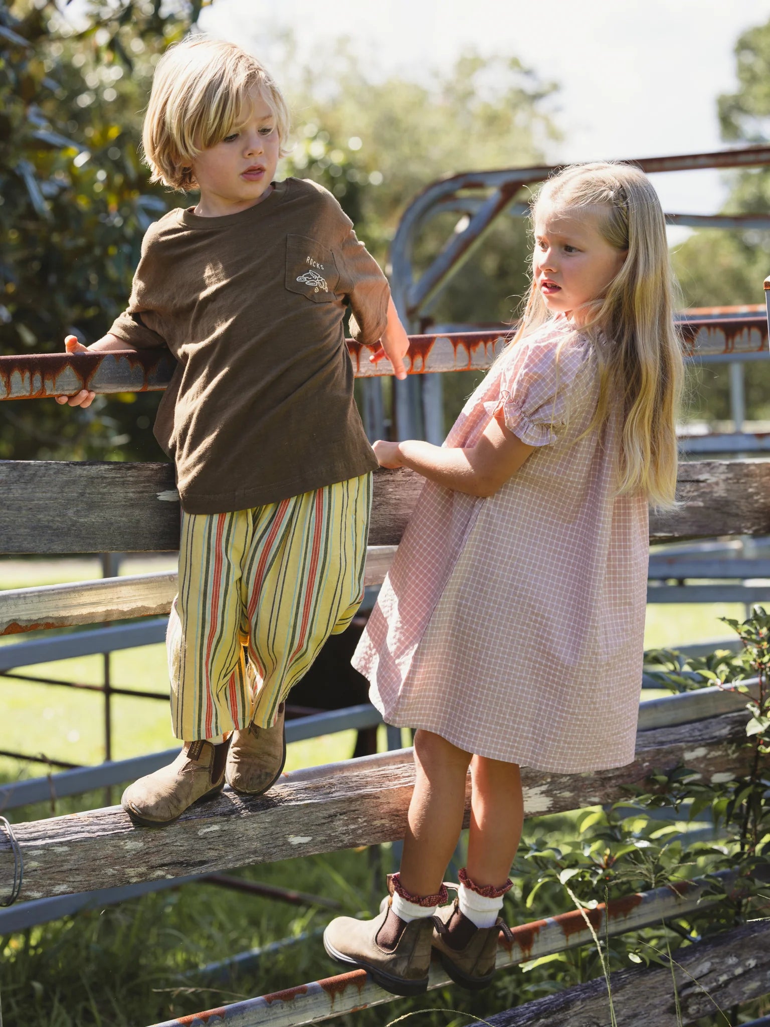 Sizing is standard. Due to the floaty fit this style can be sized up for added wear. Our models are 3yrs wearing size 3 and 7yrs wearing size 6.