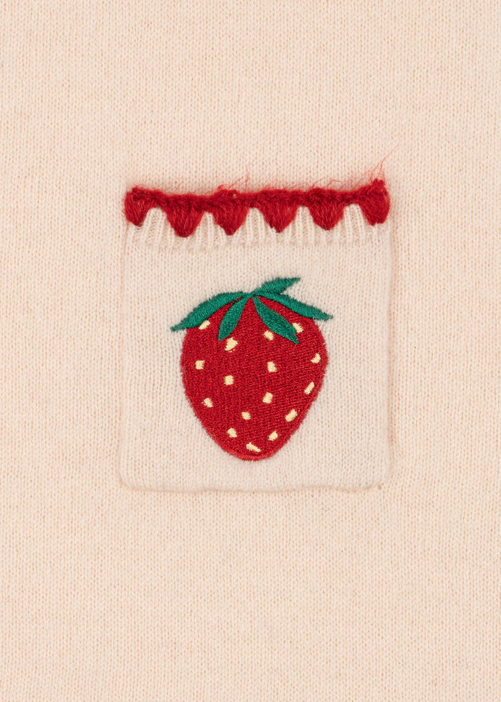 Knitted wool dress in an exceptionally soft and comfy quality with delicate strawberry embroidery. Designed with front patch pockets and a straight, fitted silhouette.