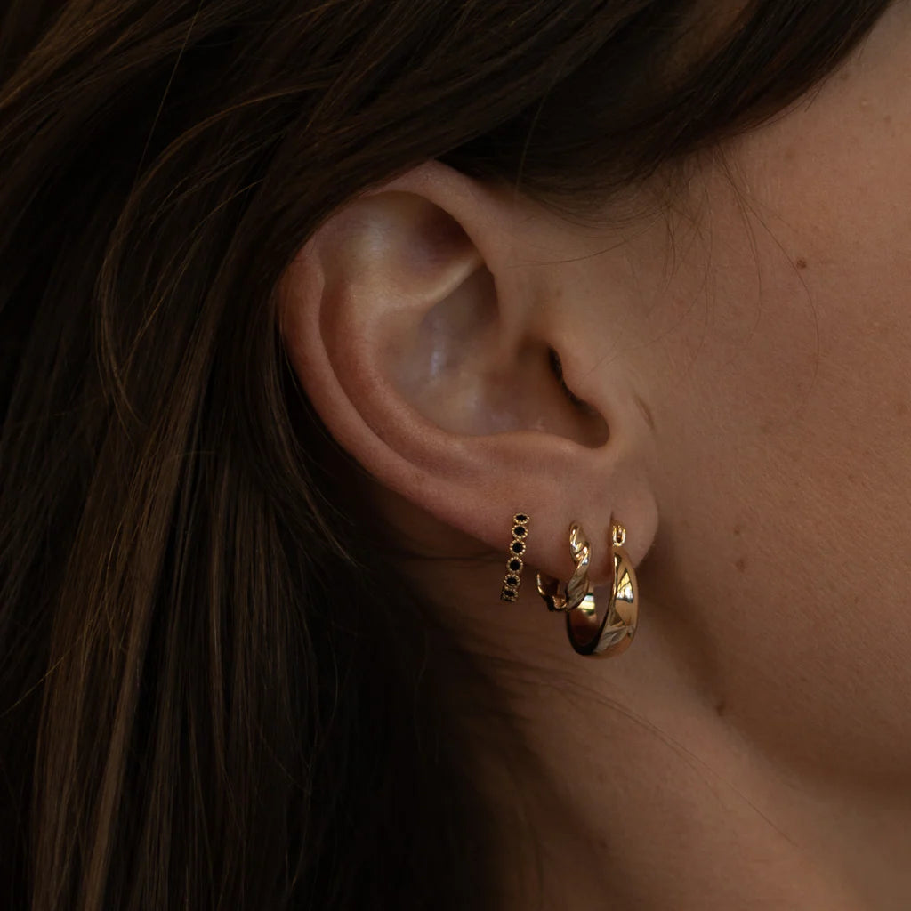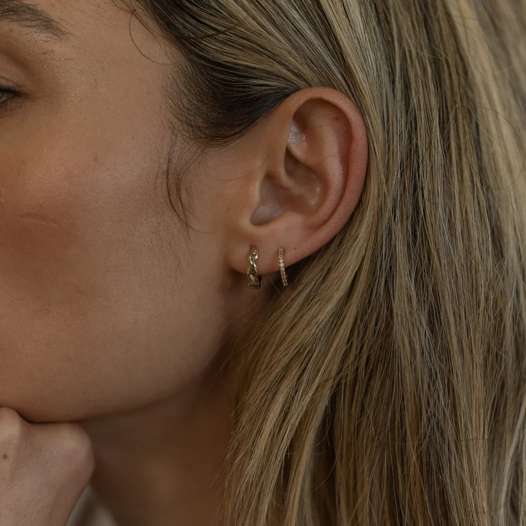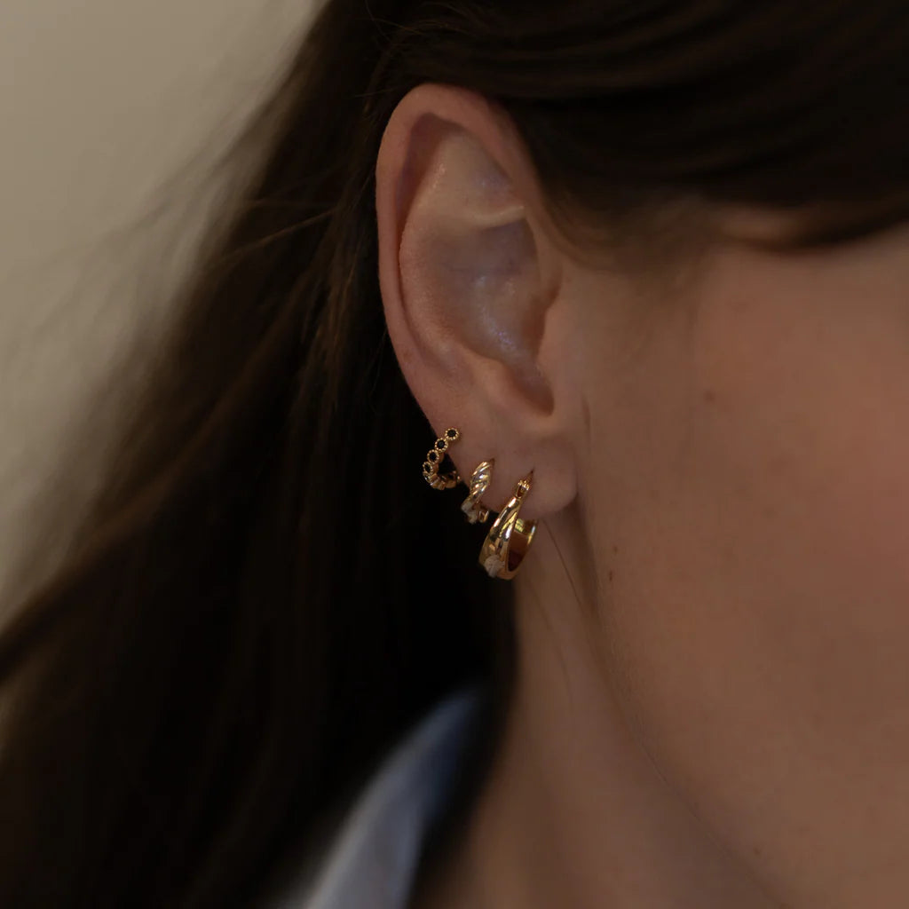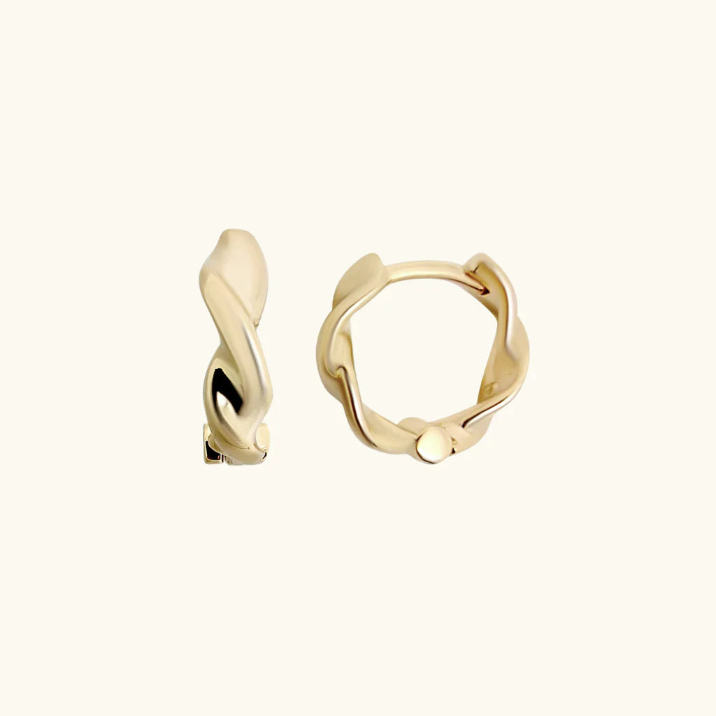 Your perfect huggie hoop with a wave-like texure. Lightweight & comfortable with an easy hinge clasp for every day wear.