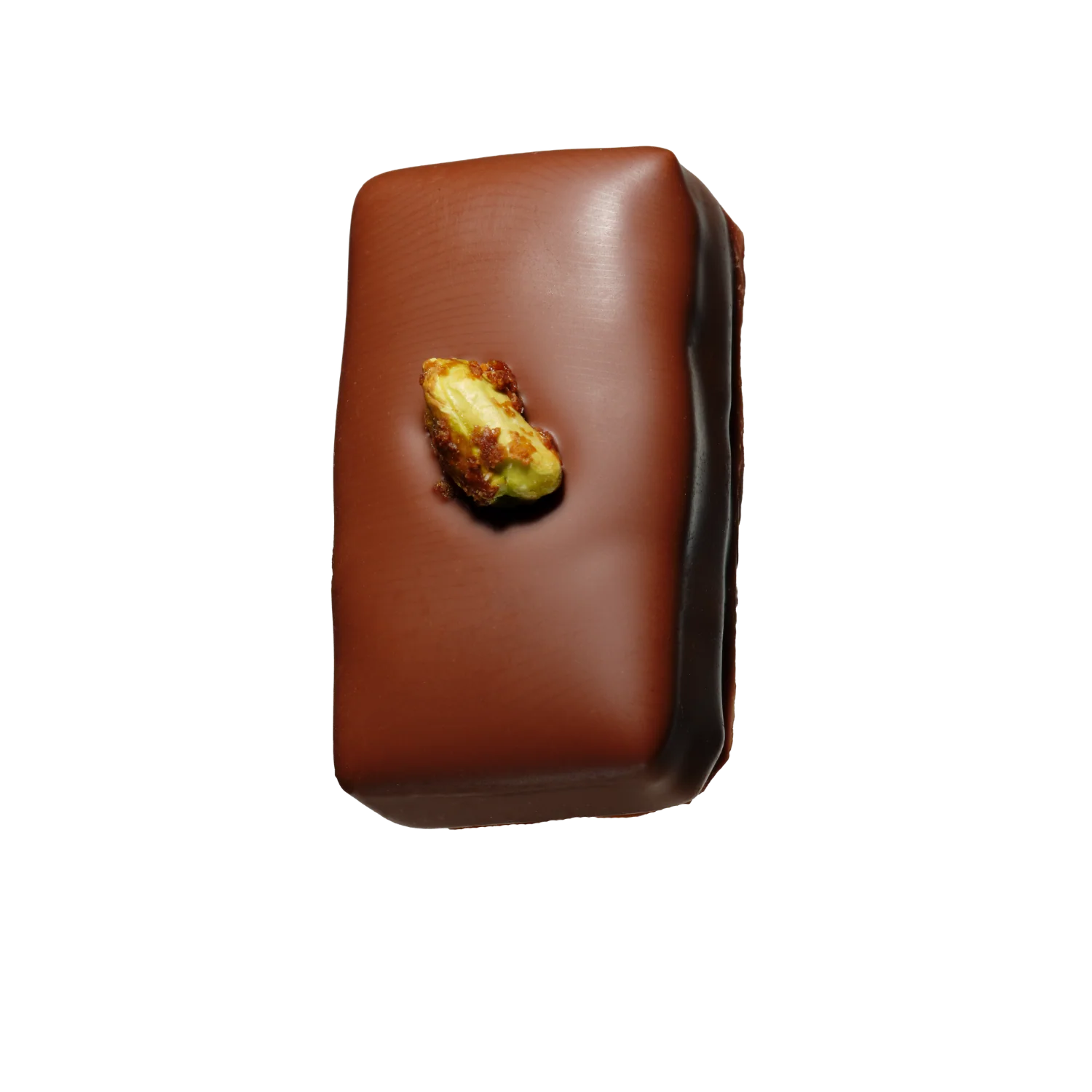 A silky pistachio ganache, dotted with lightly caramelised pistachio pieces. A balance of creamy and crunchy. Sweetened with mineral-rich natural sweeteners and enrobed in our signature mylk chocolate, spiked with beauty mushroom tremella.