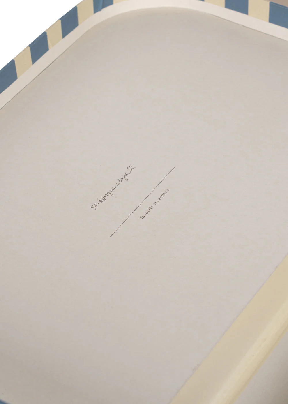 Set of two cardboard play suitcases with a metal handle. The smaller suitcase fits into the larger one.
